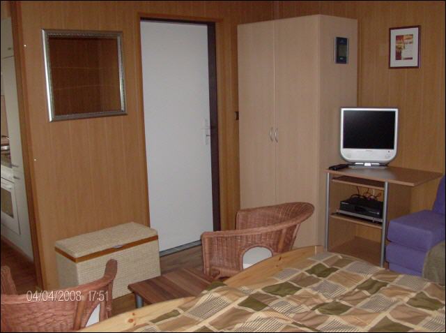 Alle Appartements bestehen aus einem Wohn/Schlafraum für 2 - 3 Personen mit einem normalen Doppelbett ( 180 x 200 cm), sowie einer zusätzlichen vollwertigen Schlafstelle ( Relaxcouch bzw. Einzelbett 90 x 200 cm ), einer optisch getrennten vollausgestatteten Küche ( E-Herd, Backrohr, Kühlschrank, Kaffeemaschine, Toaster, Abwäsche mit Warm/Kaltwasser, Küchengeschirr, Besteck usw ) mit Essplatz für 2 bzw. 3 Personen und einem Badezimmer mit Dusche, WC, Waschtisch, Spiegelschrank, Rasierstecker, Haarfön usw. |
